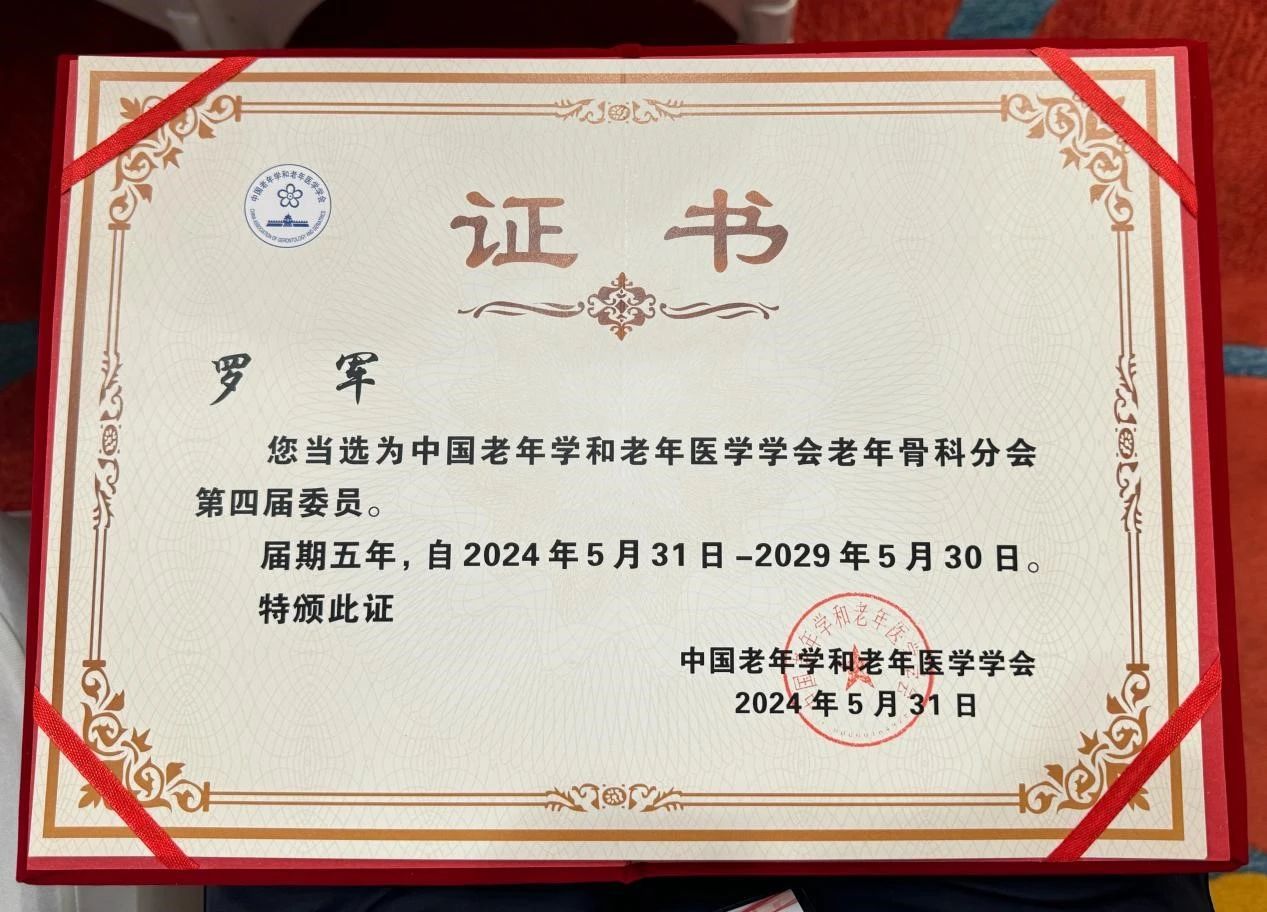 【建院21周年·廣安資訊】熱烈祝賀廣安醫(yī)院羅軍主任當選為中國老年醫(yī)學學會骨科分會全國委員