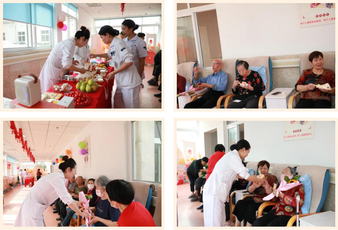頤養(yǎng)院的醫(yī)護人員們在護理部領(lǐng)導的帶領(lǐng)下帶著滿心的關(guān)懷與溫情,為院內(nèi)的老人們送去了精心鮮花和水果糕點。工作人員們拉著老人的手,耐心詢問他們的身體狀況,以及是否有什么特別的需要或愿望,那份耐心與真誠,讓老人們臉上洋溢著幸福的笑容。