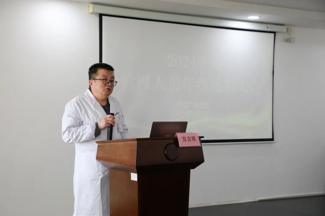 為進(jìn)一步提升醫(yī)院中層管理人員隊(duì)伍建設(shè),提升管理水平及綜合素質(zhì),全面考核和評(píng)價(jià)管理層的履職情況,總結(jié)2024年度科室工作實(shí)績(jī),查找問(wèn)題與不足,梳理制訂新年工作計(jì)劃,1月18日下午,我院召開(kāi)2024年度管理人員述職大會(huì)。院務(wù)會(huì)成員及全院中層管理人員近30人參加此次會(huì)議,會(huì)議由副院長(zhǎng)鐘琦靜主持。