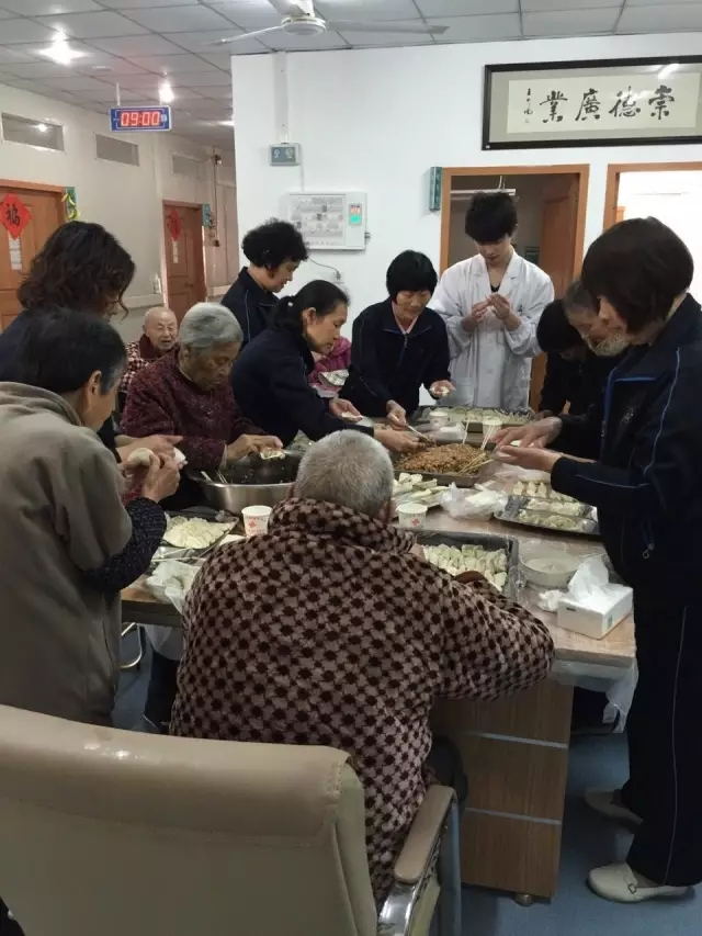對學生、上班族而言,“五一”代表著放假,對廣安老年護理院的老人而言,這個“五一”或許是一個個”甜蜜“的餃子。 4月27日,廣安老年護理院進行了包餃子活動。 幾張辦公桌拼成一張大桌子,上面鋪好桌布,擺上餃子皮、餃子餡等材料,老人、醫(yī)生、護士、護理員洗完手,圍坐一堂,包餃子活動開始啦! 老奶奶都是做餃子的高手,拿皮、蘸水、包餡、捏皮……所有動作一氣呵成,沒一會兒,元寶似的餃子就工整地排了一排。老奶奶的手雖然已變得蒼老,但那依舊是一雙巧手。 包餃子的途中,有老人的子女來探望他們,看到自己的父母笑得這么開心,也高興地同大家一起包起了餃子。 與老奶奶相比,老爺爺?shù)陌溩蛹寄茱@然不夠過關,鼓搗半天,也沒做出幾個像樣的餃子。護理阿姨、護士看老爺爺包的餃子樣子好笑,就在旁邊耐心地跟老人講解要怎么包才不會在下鍋煮時散開。老爺爺跟著一步步小心地捏,學得樂不可支。 大家的成果非常豐碩,一個小時左右就做了幾百個餃子。 熱氣騰騰的餃子上桌時,大家迫不及待地下筷品嘗。“不錯!”“好吃!”“太好吃了!”大家邊吃邊發(fā)出感慨。有些老人吃得特別香,一連吃了十幾個。
