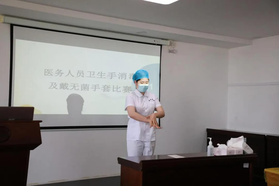 為提高醫(yī)務(wù)人員的手衛(wèi)生意識,規(guī)范手衛(wèi)生行為,我院開展手衛(wèi)生日主題活動,通過洗手、戴無菌手套、保潔人員醫(yī)廢鵝頸式封口比賽,規(guī)范醫(yī)廢收集,嚴防醫(yī)廢泄漏,進一步提高全院醫(yī)護人員、后勤人員對手衛(wèi)生的重視程度,強化手衛(wèi)生意識,養(yǎng)成良好的手衛(wèi)生習慣,有效預(yù)防和控制醫(yī)院感染。
