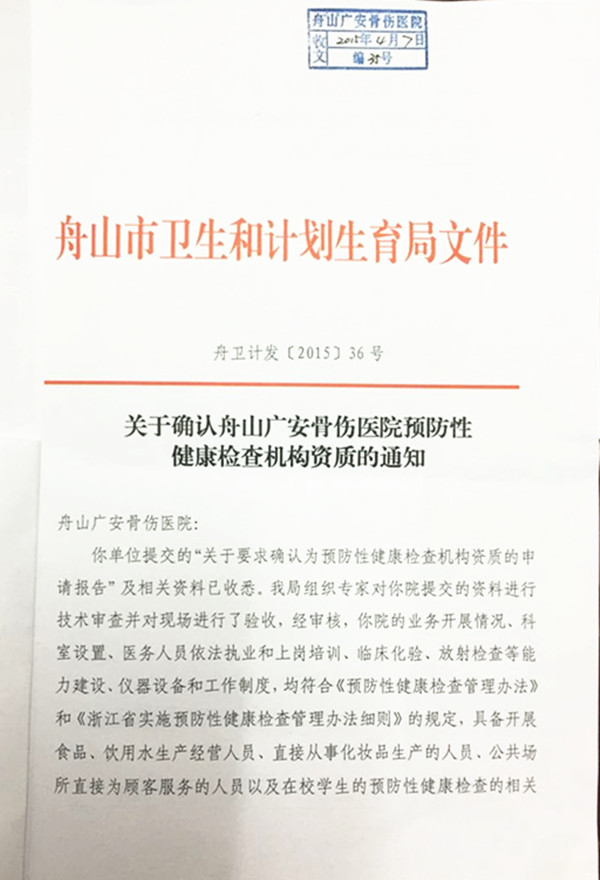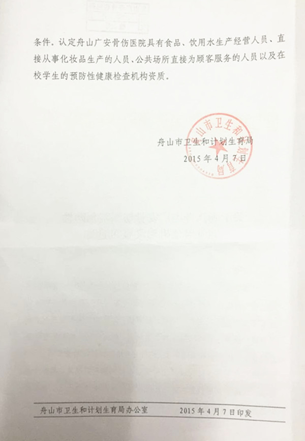 4月7日,接舟山市衛(wèi)生和計(jì)劃生育局文件,我院順利通過(guò)各項(xiàng)審核,獲得了預(yù)防性健康檢查機(jī)構(gòu)資質(zhì),認(rèn)定我院具備開(kāi)展食品、飲用水生產(chǎn)經(jīng)營(yíng)人員,直接從事化妝品生產(chǎn)的人員,公共場(chǎng)所直接為顧客服務(wù)的人員以及在校學(xué)生的預(yù)防性健康檢查的相關(guān)條件。