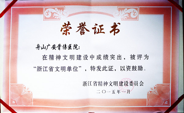 舟山廣安骨傷醫(yī)院獲選省級文明單位