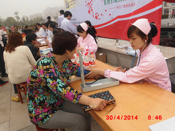 5月1日上午,我院組織開展了“進(jìn)農(nóng)村、進(jìn)社區(qū)、進(jìn)家庭”宣教義診活動(dòng)。醫(yī)院共組織手外科、脊柱外科、內(nèi)科、醫(yī)技科室的骨干十余人,在劉志安副院長(zhǎng)的帶領(lǐng)下在浦西和津廣場(chǎng)為廣大群眾提供義診服務(wù),宣傳衛(wèi)生防治和健康保健知識(shí),發(fā)放健康科普宣傳資料?;顒?dòng)得到了群眾的熱烈歡迎和一致好評(píng)。