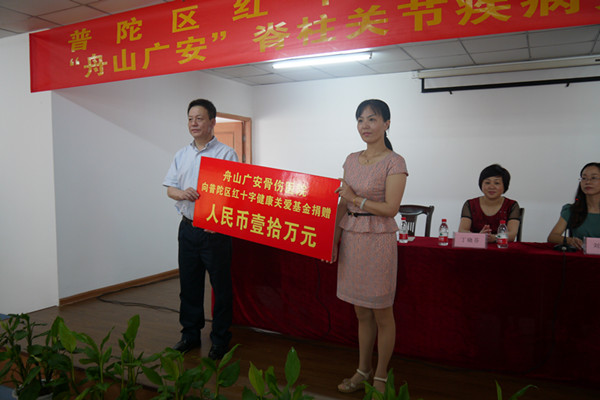 2013年6月30日上午,普陀區(qū)紅十字會(huì)與我院簽訂了普陀區(qū)紅十字健康關(guān)愛基金—“舟山廣安”脊柱關(guān)節(jié)疾病關(guān)愛項(xiàng)目協(xié)議。我院分兩年注入基金,減輕脊柱關(guān)節(jié)疾病患者的經(jīng)濟(jì)負(fù)擔(dān),首批基金達(dá)10萬元。