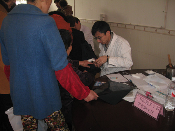 關(guān)節(jié)科副主任羅軍為病人包扎傷口