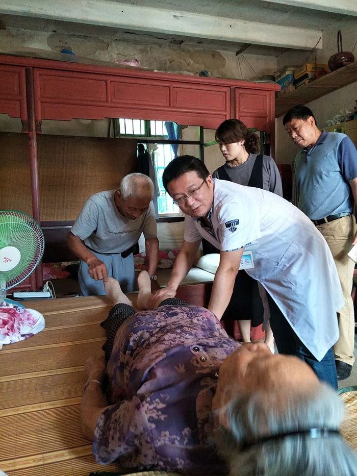 一見到廣安醫(yī)院的醫(yī)生進(jìn)了家門,張師傅抓起拐杖就要站起來。