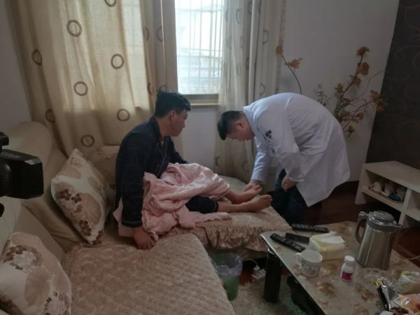 “這里還痛不痛?”“出院之后有沒有堅持康復(fù)鍛煉?” 易觀俊一邊查看鐘老伯的患肢,一邊詢問他的康復(fù)情況,并交代了康復(fù)的注意事項。