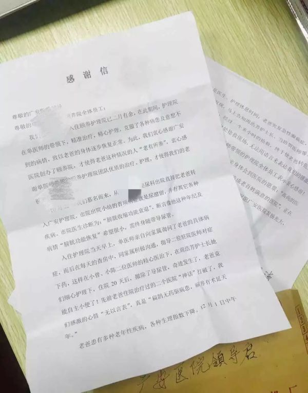 一字一句,都包含了患者滿滿的感謝之情。我們第一時間把這封感謝信轉(zhuǎn)交給我們廣安頤養(yǎng)院的醫(yī)護(hù)人員,他們這樣說......