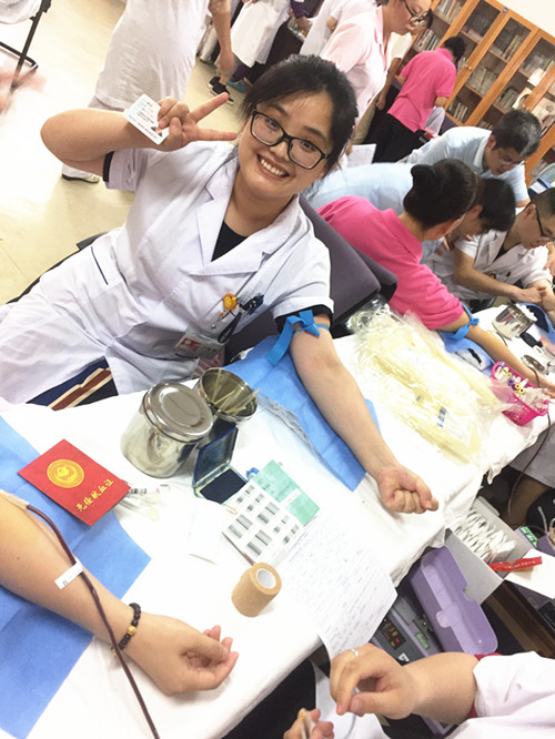 醫(yī)??浦魅斡嘈【矃⒓恿舜舜潍I(xiàn)血,她說:獻(xiàn)血是每個(gè)公民應(yīng)盡的責(zé)任和義務(wù),也是回報(bào)社會(huì)的實(shí)際行動(dòng)。獻(xiàn)血后同志們都放棄休息,堅(jiān)持上班,這種無私奉獻(xiàn)、助人為樂的精神讓人肅然起敬。