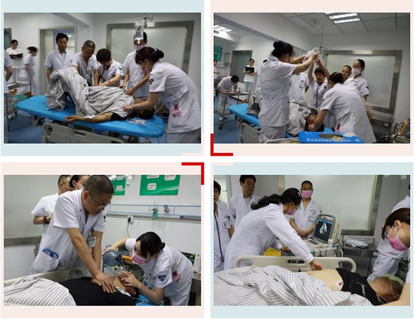 床旁胸腹部超聲檢查、床旁心電圖、床旁X攝片麻醉科準(zhǔn)時(shí)到達(dá),設(shè)備完好,報(bào)告規(guī)范。危重病人搶救工作有條不紊地進(jìn)行著。在此過程中,領(lǐng)導(dǎo)評(píng)委組不停地向參與演練的醫(yī)護(hù)人員拋出一個(gè)又一個(gè)難題,在場醫(yī)護(hù)人員迅速有效、忙而不亂的進(jìn)行解決,整個(gè)現(xiàn)場緊張、嚴(yán)肅、有序。