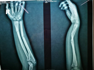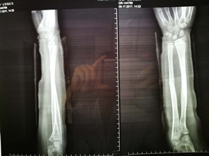 看到女兒彎曲畸形的前臂,心疼不已的爸爸媽媽連忙抱起小女孩奔入附近的東港某骨科醫(yī)院。X線片顯示:左尺、橈骨骨折,骨折嚴(yán)重移位。這時(shí),媽媽首先想到的廣安醫(yī)院正骨科虞杰主任。之前,她曾在廣安醫(yī)院正骨科就診,對(duì)正骨科醫(yī)護(hù)人員的服務(wù)態(tài)度、服務(wù)質(zhì)量及醫(yī)療技術(shù)非常信任。