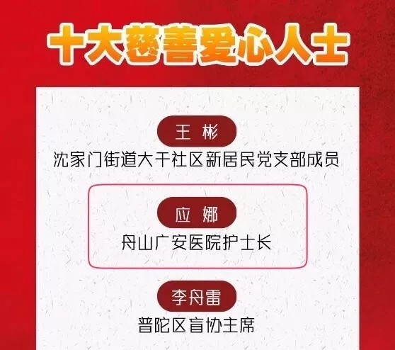 涓涓細(xì)流,匯成大愛。在普陀區(qū)慈善總會、普陀區(qū)紅十字會等共同組織發(fā)起的普陀區(qū)首屆“慈善愛心榜”評選活動中,應(yīng)娜榮獲了十大慈善愛心人士這一殊榮。