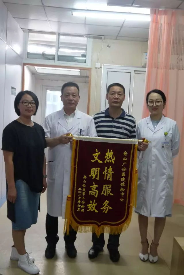 6月28日,普陀公交三公司領(lǐng)導(dǎo)親自將一面錦旗送到廣安醫(yī)院院長郭維杰的手中,錦旗上書:“熱情服務(wù) 文明高效”,以感謝廣安體檢中心為其公司員工進行全面細致的體檢。該公司員工盛贊體檢工作安排得細致周到,體檢方案完善全面,醫(yī)生醫(yī)術(shù)精湛,工作人員服務(wù)熱情,早餐安排營養(yǎng)豐盛。