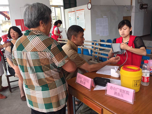 這是由舟山市紅十字會(huì)和舟山晚報(bào)聯(lián)合舉辦的“紅十字 博愛”晚報(bào)公益行團(tuán)隊(duì),他們中有來(lái)自市紅十字會(huì)的工作人員,有廣安醫(yī)院的醫(yī)護(hù)人員,還有社會(huì)各界義工,此行的目的,是為東極老百姓帶去健康和關(guān)愛。