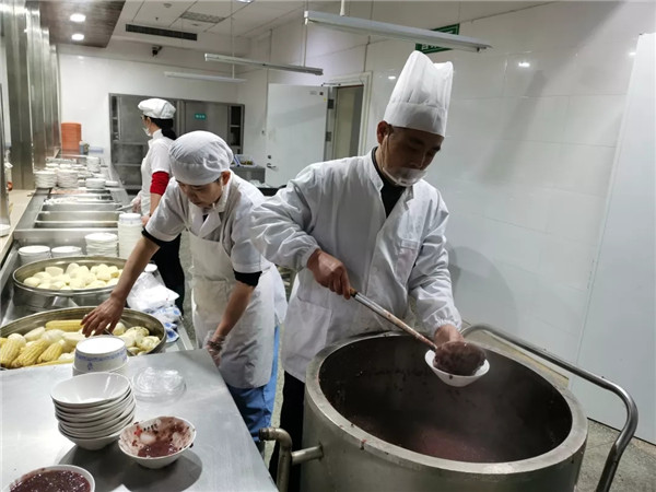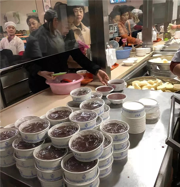 食堂工作人員凌晨三點多就開始熬粥了,香甜軟糯的臘八粥,讓整個食堂都充滿了溫暖與幸福的味道。