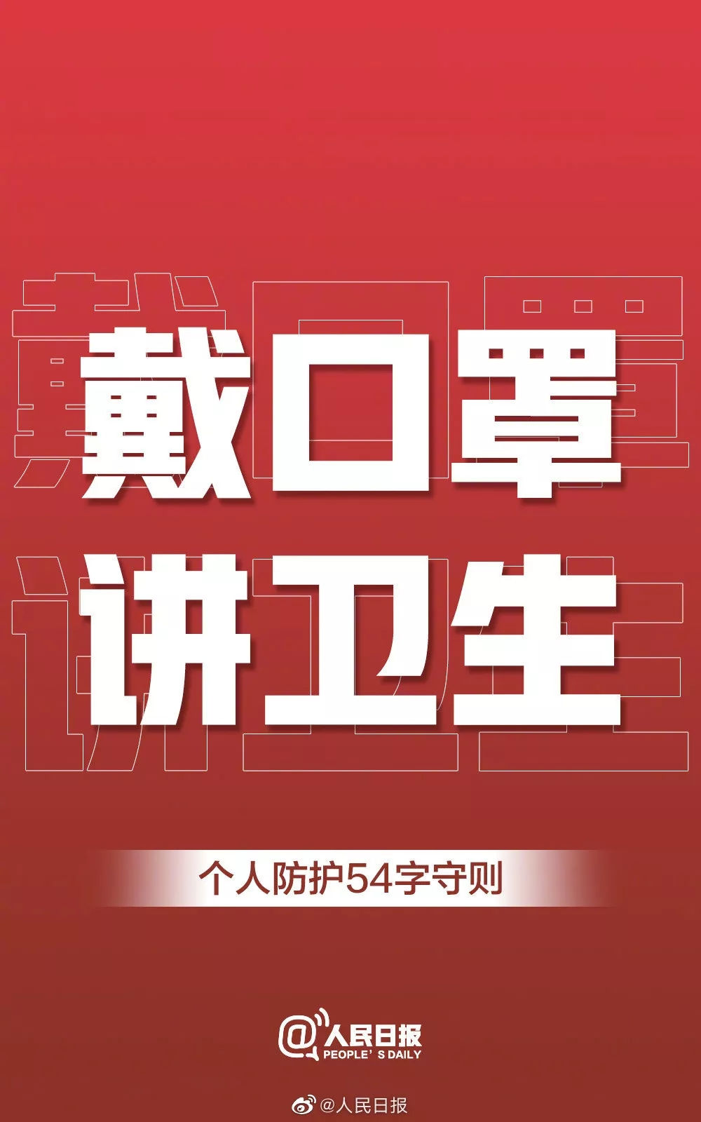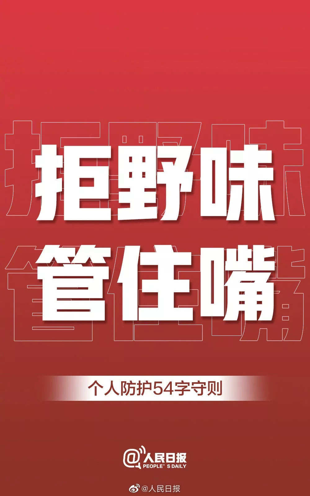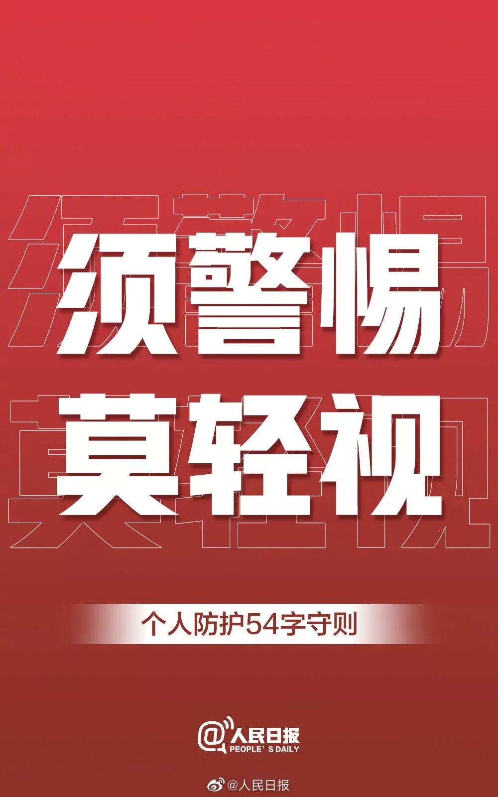 1月31日起。新型冠狀病毒開始進(jìn)入“爆發(fā)傳播期”,在此,我們呼吁廣大市民,為減輕在前線奮斗的醫(yī)護(hù)人員的壓力,為了自身的健康,請自覺遵守一下“個人防護(hù)54字守則”: