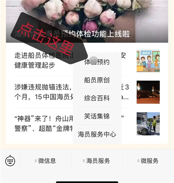 02、點擊海員服務(wù)--體檢預(yù)約欄目