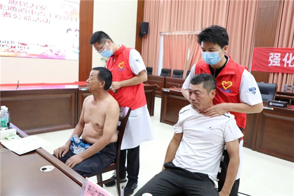 本次義診現(xiàn)場(chǎng)還配備了心電圖機(jī)、B超等醫(yī)療設(shè)備,免費(fèi)為工人們測(cè)量心電圖、血壓,做B超等檢查。康復(fù)科專(zhuān)門(mén)選派了兩名骨干醫(yī)生為現(xiàn)場(chǎng)的工人們開(kāi)展針灸推拿等中醫(yī)診療服務(wù)。
