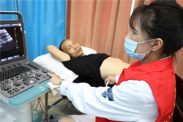 “我本來(lái)?yè)?dān)心有結(jié)石的,因?yàn)楣ぷ骱苊?,沒(méi)有時(shí)間外出去醫(yī)院檢查,這次義診真是太好了,讓我不用出門(mén),不用請(qǐng)假,在工地里就能做B超,及時(shí)了解自己的健康情況。”