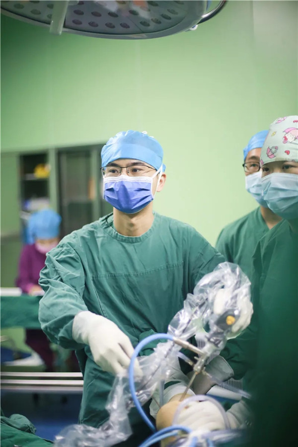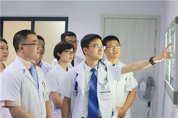 ↑上海第六人民醫(yī)院蔣垚教授正在指導(dǎo)羅軍團(tuán)隊(duì)