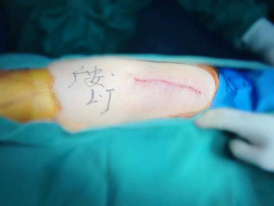 術(shù)中,醫(yī)生在患者髂前上棘外側(cè)切開約8cm長的切口,小心翼翼地利用闊筋膜張肌與縫匠肌之間的間隙露出髖關(guān)節(jié)。經(jīng)過一番精細(xì)、高難度的操作,成功植入人工髖關(guān)節(jié)組件,以取代受損的股骨頭和髖臼。由于手術(shù)切口小,肌肉組織未受損,鄭阿姨恢復(fù)很快,術(shù)后第1天就能下床活動。