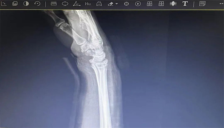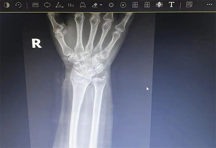 患者老年女性,50多歲,在騎電動車停下時因電動車倒下,右手著地,當(dāng)即感覺,右腕及骶尾部腫痛伴右關(guān)節(jié)畸形、活動受限,急來我院就診。門診醫(yī)師結(jié)合病史、查體及輔助檢查后,診斷為:右橈尺骨遠(yuǎn)端骨折、骶尾部挫傷并收入住院部。