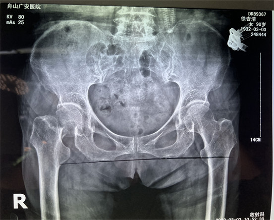 在舟山廣安醫(yī)院辦理住院后,經(jīng)過白黎明副主任和骨科中心羅軍主任的系統(tǒng)檢查和全面評(píng)估后,決定為患者做了微創(chuàng)智能DAA人工髖關(guān)節(jié)置換。