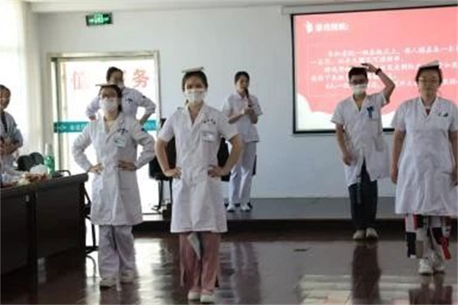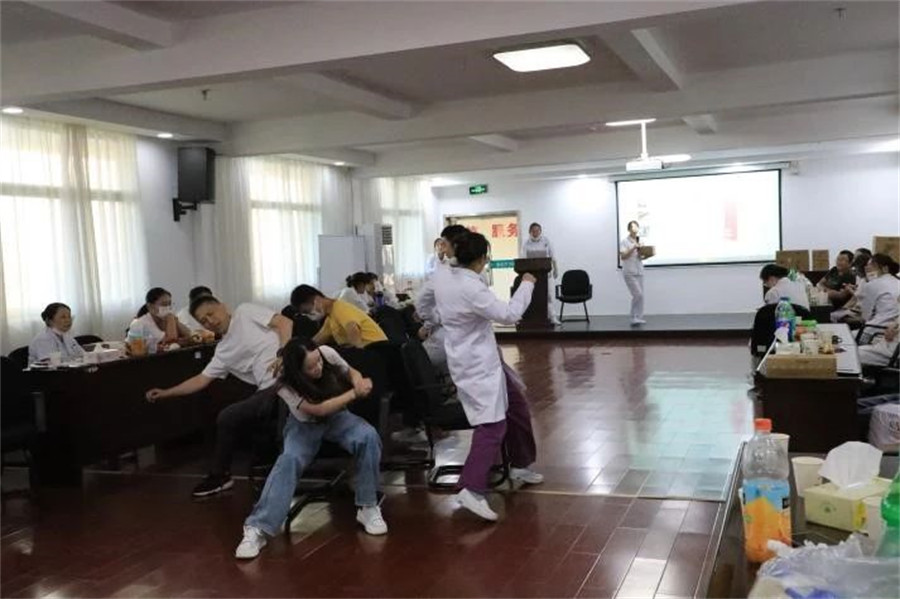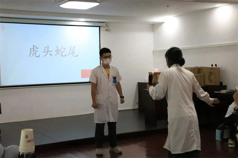 這一次題目內(nèi)容涵蓋醫(yī)療專業(yè)名詞、成語、古詩,難度系數(shù)可不是一般的大,看著比劃者手舞足蹈,猜詞者卻一頭霧水,場下觀眾可是比臺上參賽者都著急,有人出主意,有人大笑,場面熱鬧非凡。最終裴燕和鄧佳婧憑借多年默契,拿下全場最佳。