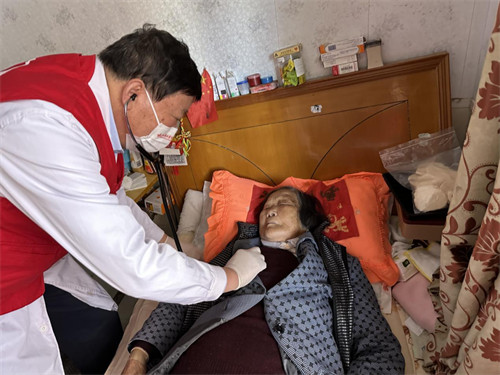 有幾位患者因長期臥床腿腳不便,不能來到義診現(xiàn)場,副主任醫(yī)師虞晉卿就來到了患者家中,為他們上門提供醫(yī)療咨詢服務。