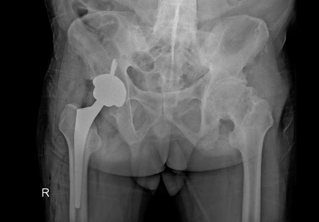 術前拍片顯示髖關節(jié)僵直伴股骨頭壞死