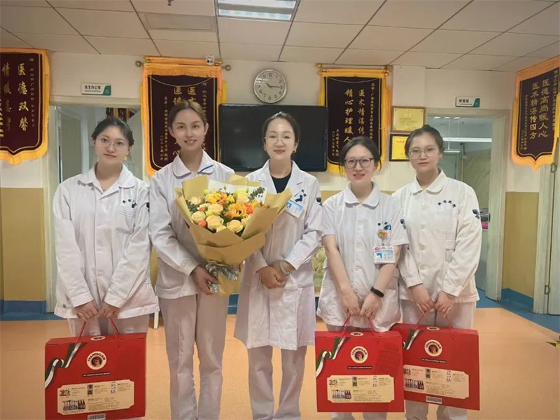 “感謝你們用專業(yè)與愛心,為患者點(diǎn)亮生命的希望,祝你們護(hù)士節(jié)快樂!”領(lǐng)導(dǎo)們與護(hù)士們親切握手、熱情擁抱,詳細(xì)詢問她們的工作和生活情況,對大家在臨床護(hù)理、疫情防控、健康宣教等工作中展現(xiàn)出的堅韌不拔、敬業(yè)奉獻(xiàn)精神給予高度贊揚(yáng)。一句句暖心的話語,讓護(hù)士們臉上洋溢起幸福的笑容,連日工作的疲憊仿佛也在這一刻煙消云散。
