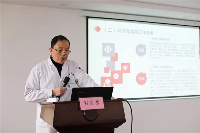 會(huì)上,周正副院長(zhǎng)全面盤(pán)點(diǎn)了2020年度工作開(kāi)展情況,并對(duì)新一年的工作提出了新的要求和部署。2020年是我院“打造老百姓滿意醫(yī)院”的基礎(chǔ)年,在集團(tuán)領(lǐng)導(dǎo)的帶領(lǐng)下,在全院職工的努力下,順利地走過(guò)了這極不平凡的一年,各項(xiàng)工作取得了可喜的成績(jī)。這一年,我院認(rèn)真落實(shí)全國(guó)文明城市創(chuàng)建工作,嚴(yán)格做好新冠防疫工作以確保廣大人民群眾和全體員工的安全健康。同時(shí)在臺(tái)灣醫(yī)管專家馬作鏹教授的帶領(lǐng)下,繼續(xù)推進(jìn)全面質(zhì)量管理工作,各項(xiàng)醫(yī)療安全質(zhì)量、醫(yī)療服務(wù)能力都有了新的提升。我院不斷強(qiáng)化科技興院,臨床新技術(shù)、全院信息化建設(shè)再上新臺(tái)階。我院積極開(kāi)拓市場(chǎng),服務(wù)社會(huì),特色醫(yī)院文化品牌愈加亮麗。